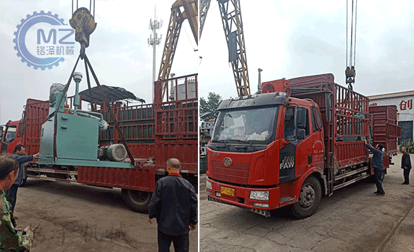 惠州客戶訂購200噸魚餌壓塊機的發貨現場