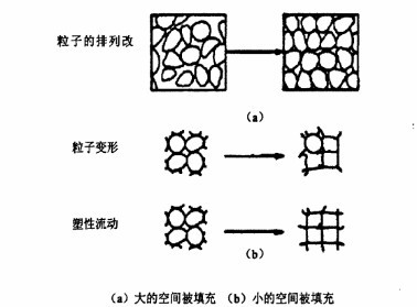 一開始粒子和粒子之間的空隙比較大,當(dāng)施加一定壓力時(shí),粒子之間相互移動位置發(fā)生改變,一部分粒子受到擠壓填入到粒子之間的空隙內(nèi)。當(dāng)粒子間的空隙被填滿后,別的粒子就很難再進(jìn)來了。要去填充周圍的空隙,只有經(jīng)過再增加壓力靠粒子本身的變形,當(dāng)兩個(gè)相鄰的粒子相互擠壓延展的時(shí)候,繼續(xù)增大壓力,粒子與粒子受到擠壓纖維粘結(jié)后就會相互結(jié)合,體積大幅度減小,密度顯著增大,原本分散的粒子就被致密成型了,一般不能再恢復(fù)原來粒子的結(jié)構(gòu)形狀。