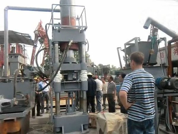 英國(guó)客戶考察礦物質(zhì)壓塊機(jī)